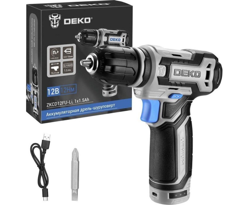 Аккумуляторная дрель-шуруповерт DEKO ZKCD12FU-Li, 12В, 1х1.5Ач 063-4141