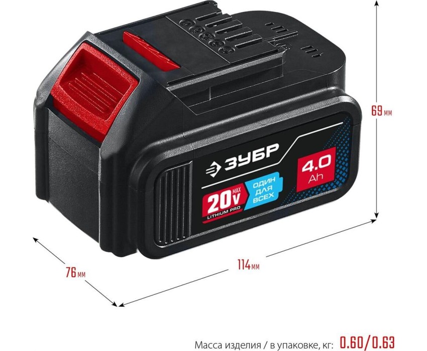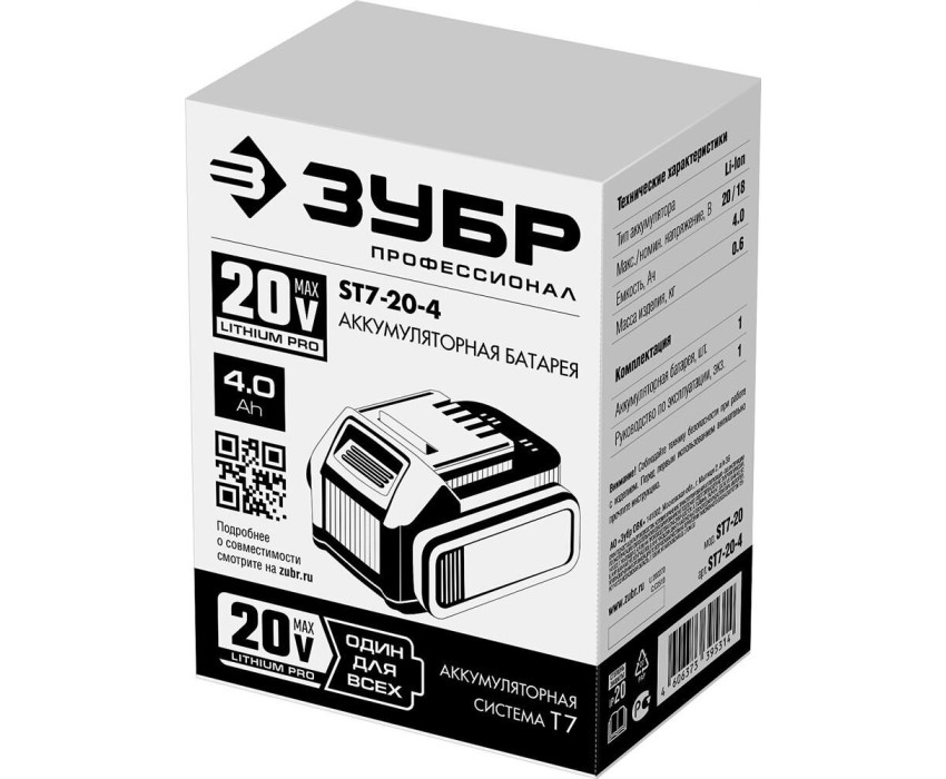 Батарея аккумуляторная ЗУБР ST7-20-4 20В, 4.0А·ч