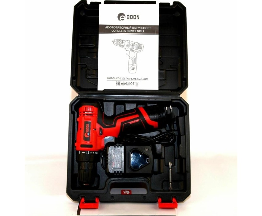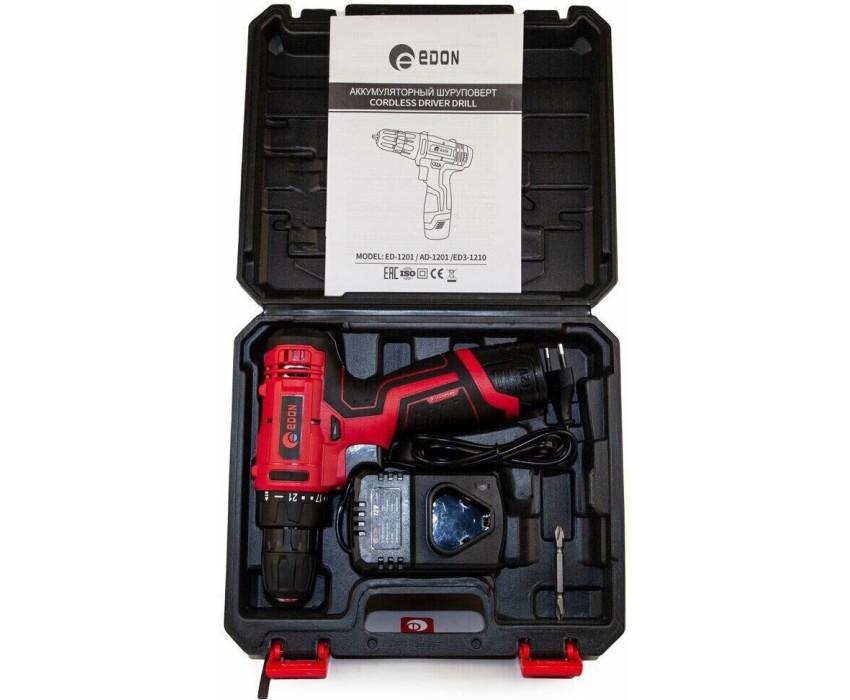 Дрель-шуруповёрт EDON AD-1201 черный/красный 15417 12В, 1аккум