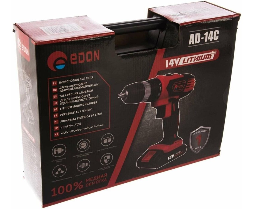 Дрель-шуруповёрт EDON AD-14C черный/красный 14790 14В, 2аккум