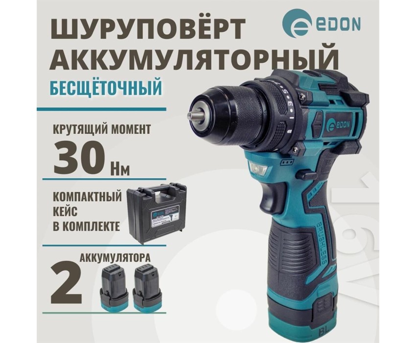 Дрель-шуруповёрт EDON AD-16CBL черный/зеленый 28006 16В, 2аккум., бесщеточный