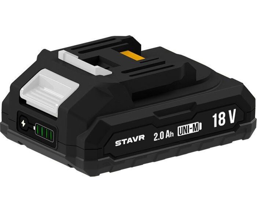 Преимущества: Универсальная аккумуляторная платформа, совместимая с инструментами и садовой техникой других брендов, имеющих аналогичную посадку аккумулятора (более 500+ инструментов). Чип для совместимости с другими брендами и контроля работы инструмента. Усиленный корпус. Защита от перегрузки, перегрева и перезаряда. Заряжается от быстрых зарядных устройств. Рекомендуемые зарядные устройства: SBC 18-3A-01, SBC 18-6A-01, SBC 18-6A2-01, KBC 18-1A-01. Характеристики: Тип аккумулятора: Li-ion, 18 V UNI-M. Выходное напряжение: 18 В. Номинальная емкость: 2,0 А·ч. Маркировка: 5ICR18/65. Индикатор заряда: Имеется. Устройство аккумулятора: Слайдер. Масса: 0,4 кг.