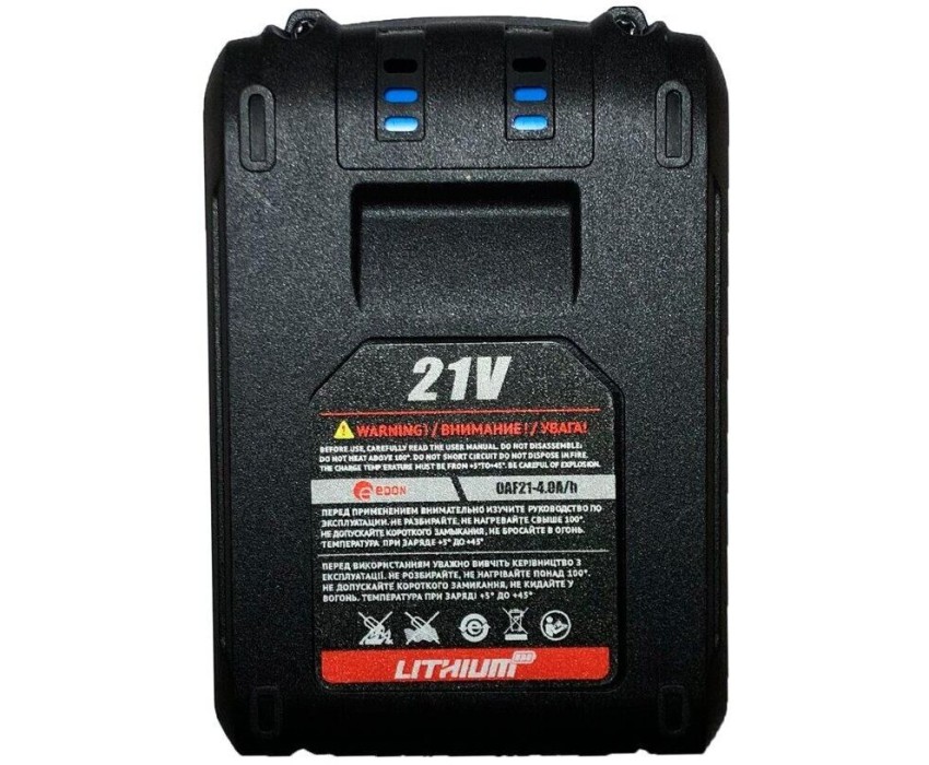 Аккумулятор литий-ионный Edon LIO/OAF21-4,0 Ah. Применяется для аккумуляторного инструмента Edon серии OAF21. Габаритный размер: 20x13x6 см. ; Вес брутто: 0,7 кг. (Вес с упаковкой).
