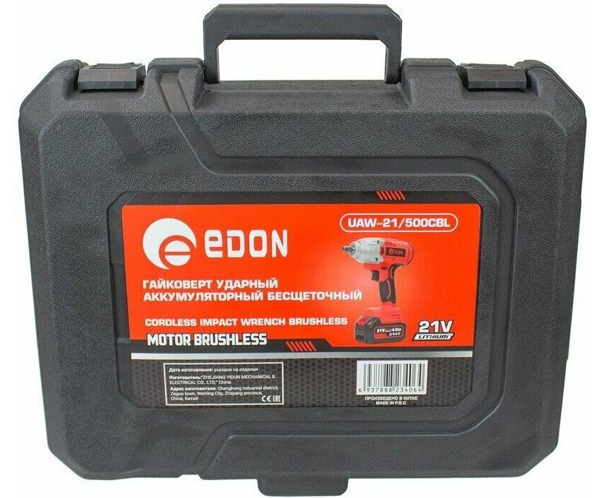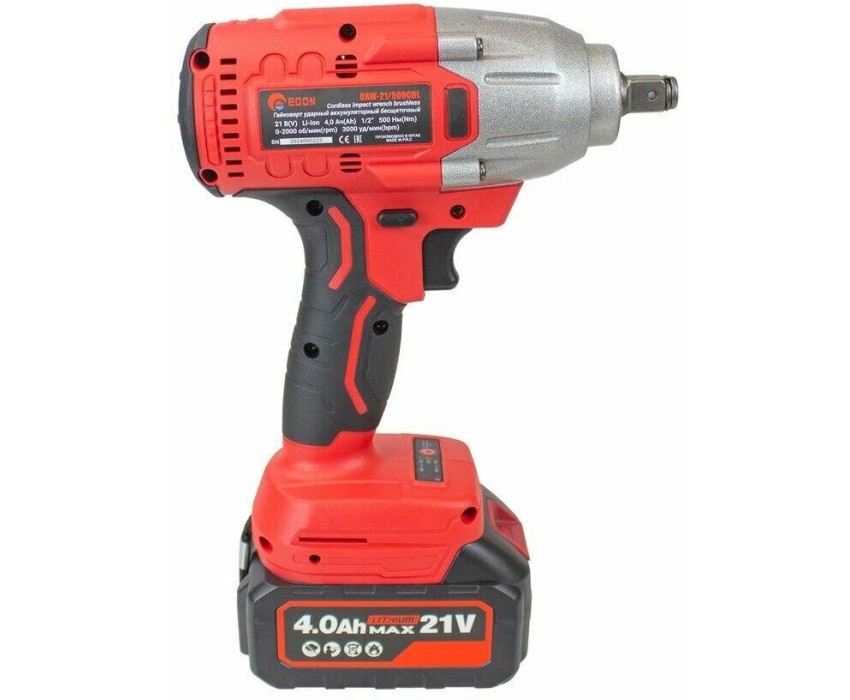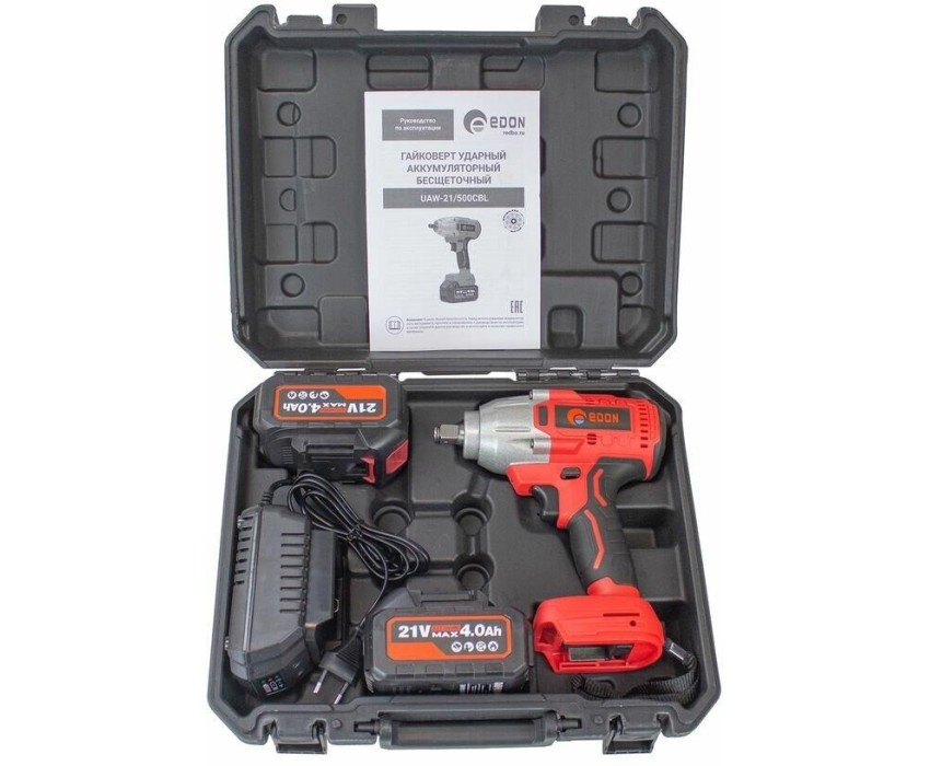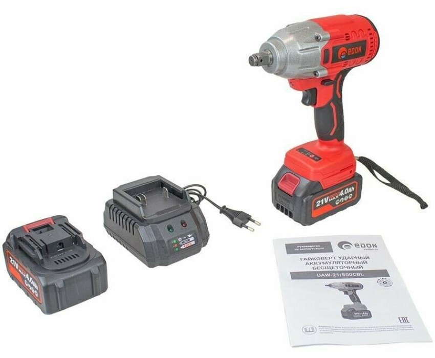 Гайковерт ударный EDON UAW-21/500CBL красный/черный, 21В, 2аккум., бесщеточный