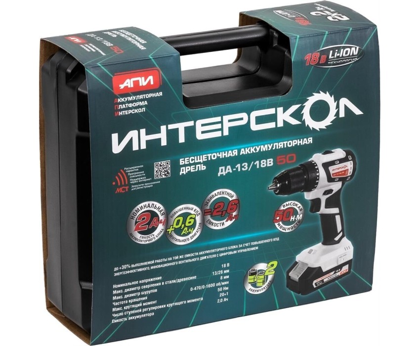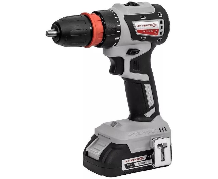 INTERSKOL Бесщеточная аккумуляторная дрель-шуруповерт КОМБИ ДА-13/18В 50 ИНТЕРСКОЛ 776.2.2.79