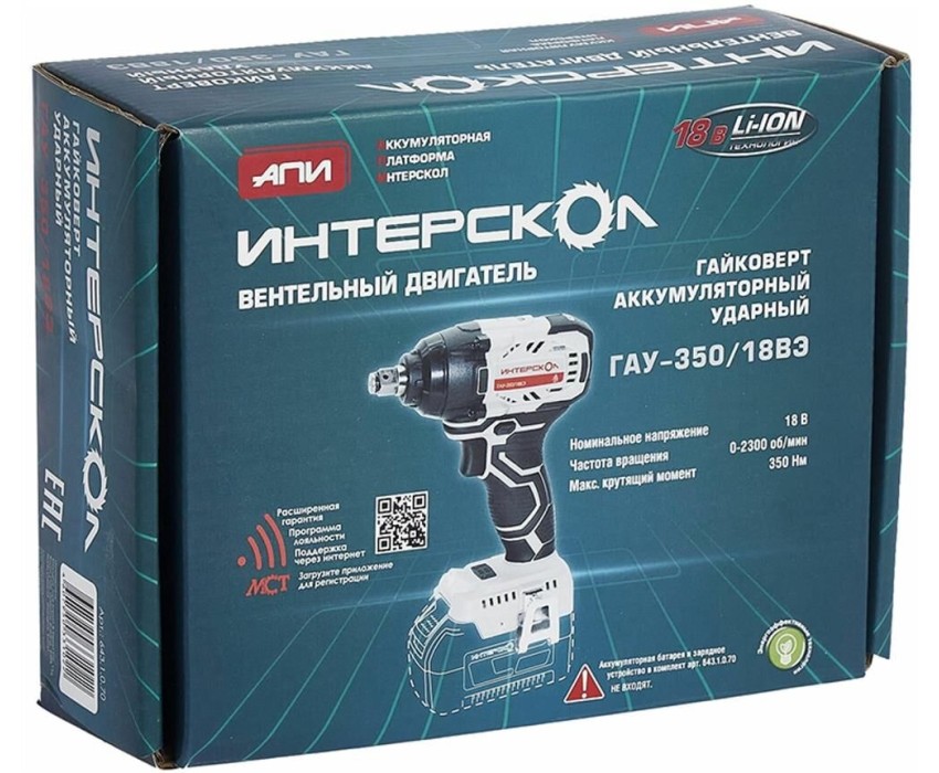 INTERSKOL Бесщеточный аккумуляторный ударный гайковерт ГАУ-350/18ВЭ ИНТЕРСКОЛ 643.1.0.70