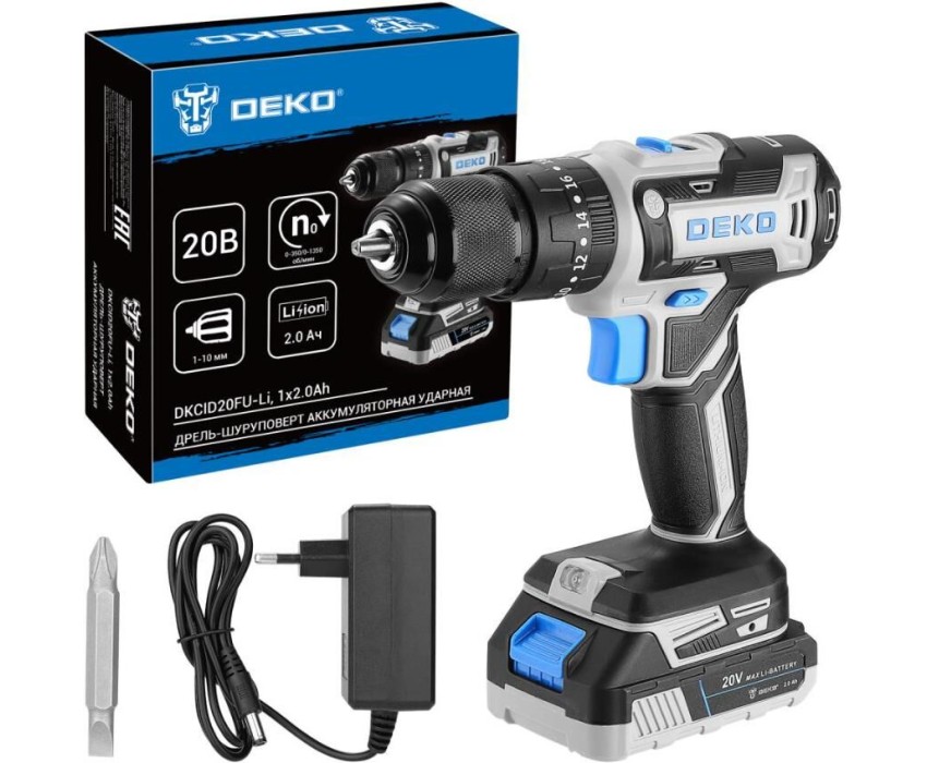 Дрель-шуруповерт DEKO DKCID20FU-Li, 20В, 1x2.0Ач 083-1119