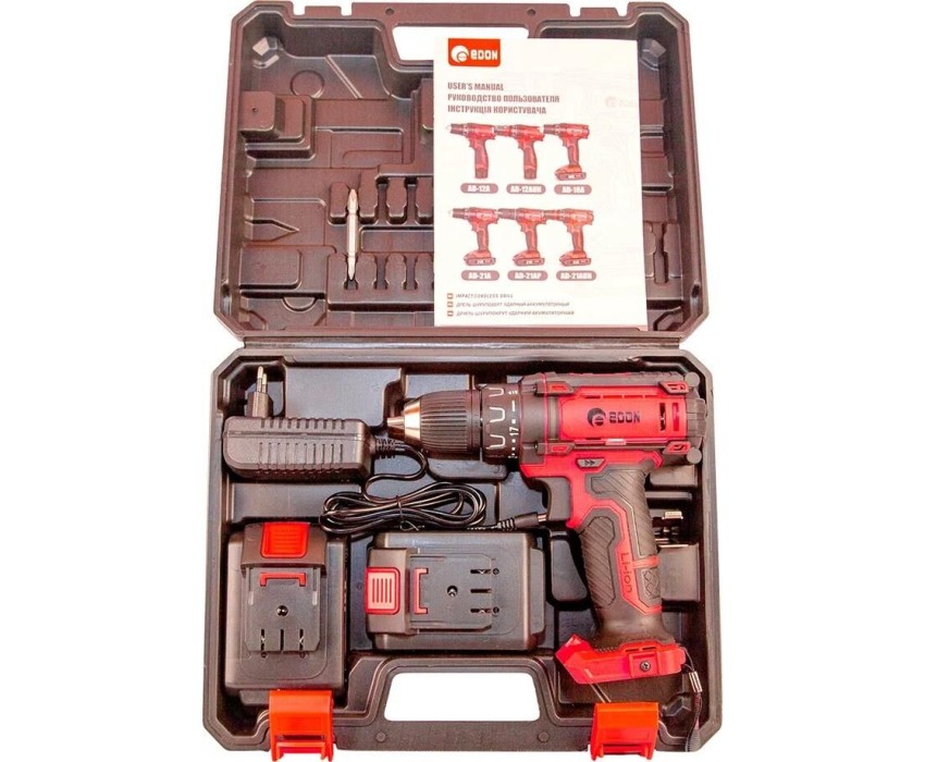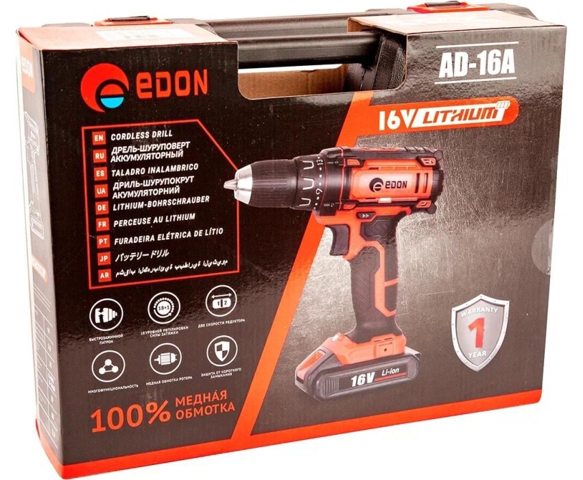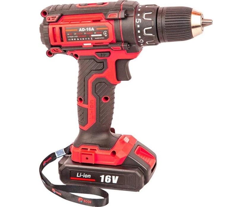 Дрель-шуруповёрт EDON AD-16A черный/красный 15424 16В, 2аккум