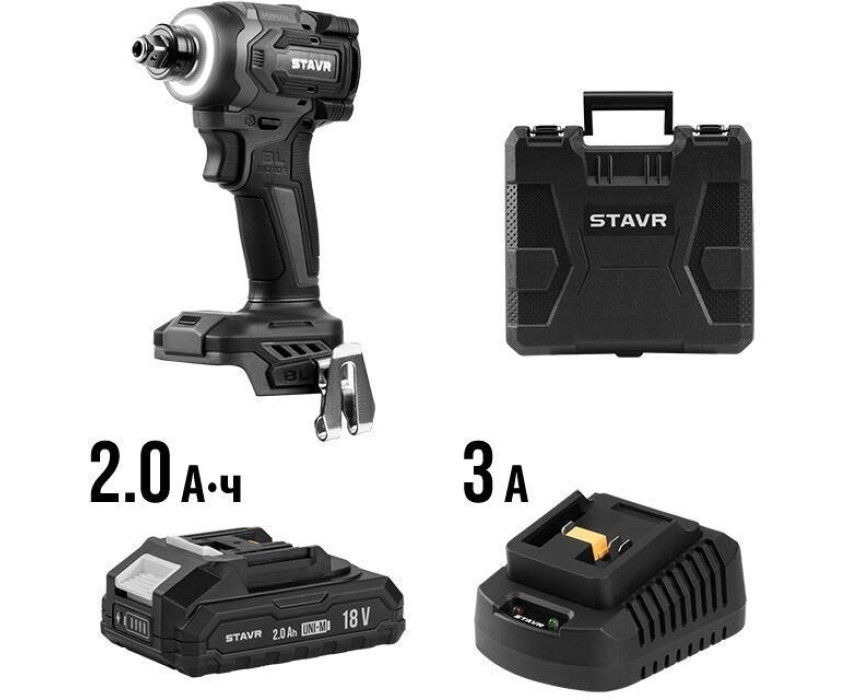 Шуруповерт ударный аккум. 230Нм, BL, 18V UNI-M, Stavr SID 18BL-230V-1K, hex 1/4+1/2",13 реж,1200/1900/2500/3200об/мин,подсветка(АКБ 1х2.0Ач, ЗУ, кейс) ЗАВОРАЧИАНИЕ 4 режима с ударом, различающиеся числом оборотов и максимальным крутящим моментом. + Отдель