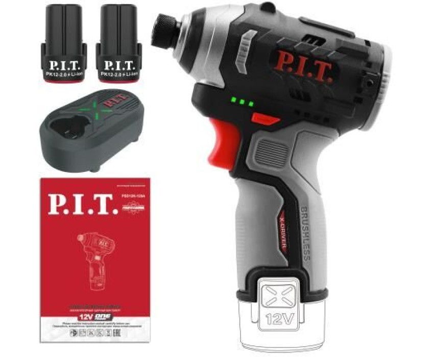 Винтоверт P.I.T. Винтоверт IMPACT аккум. бесщёточный PSD12K-120A/2 (12В, 120Нм, 3ск, HEX 1/4", 2х2Ач, ЗУ,кейс)