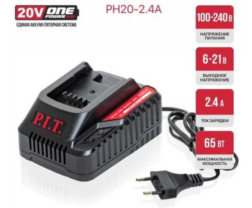Зарядное устройство P.I.T. Зарядное устройство PH20-2.4A (20В, ток 2.4А, 65Вт, для всех акб 20В системы OnePower)