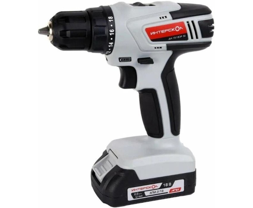 Дрель-шуруповерт INTERSKOL Аккумуляторная дрель-шуруповерт ДА-10/18ЭР 35 ПРОМО, 18В, 1400 об/мин, с 2 АКБ 2 Ач и ЗУ ИНТЕРСКОЛ 518.2.2.20