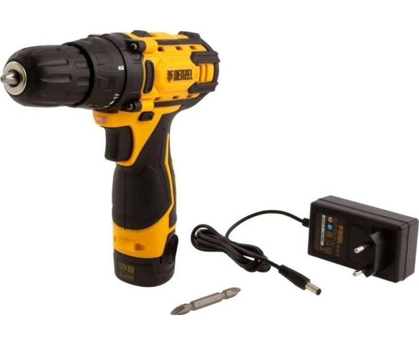 Дрель DENZEL Дрель-шуруповерт аккумуляторная CDL-12CB, Li-Ion, 12 В, 1 акк. 26102