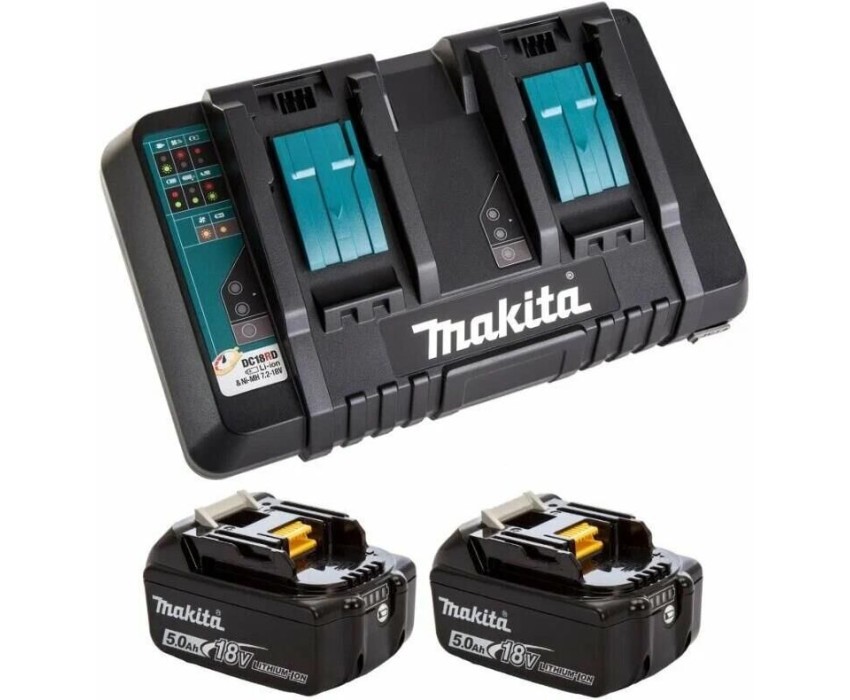 Напряжение: 18. Емкость: 5. Вес: 3740. Тип аккумулятора: Li-Ion. Устройство аккумулятора: Слайдер. Назначение: для электроинструмента. Совместимость: для Makita. Время заряда: 45. Индикатор уровня заряда: ДА. Модель зарядного устройства: DC18RD. Зарядное устройство в комплекте: есть. Количество аккумуляторов в комплекте: 2. Габариты упаковки (ед) ДхШхВ: 0.3x0.21x0.19. Вес упаковки (ед): 1. Гарантия: 12 мес.. Тип аккумулятора: Li-Ion. Устройство аккумулятора: Слайдер. Вес: 3740 грамм. Напряжение: 18 В. Назначение: для электроинструмента. Емкость: 5 Ач