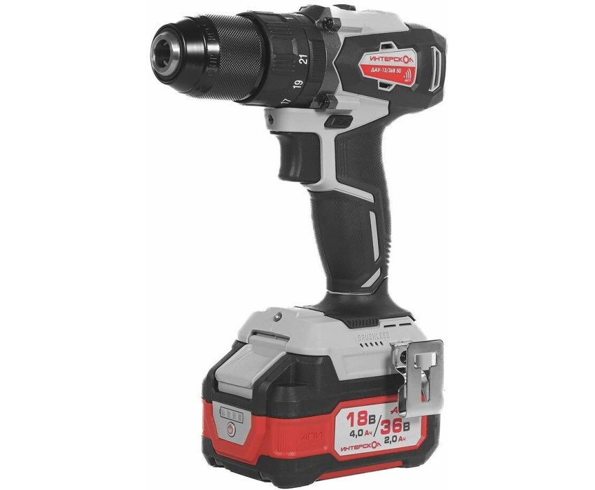 Дрель-шуруповерт ИНТЕРСКОЛ Ударная дрель-шуруповерт ДАУ-13/36В 50, 2Ач, с двумя аккумуляторами [850.2.2.70]
