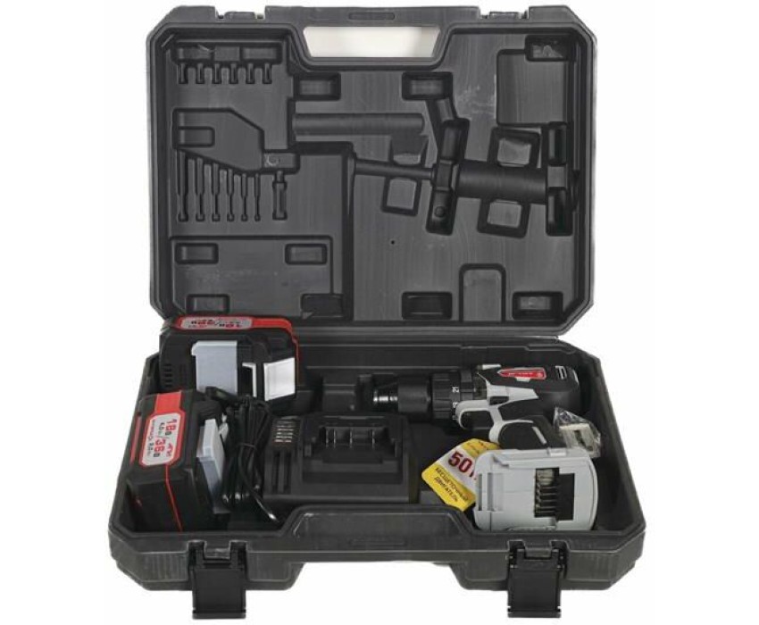 Тип инструмента: Ударная дрель-шуруповерт. Крутящий момент: 50. Крутящий момент (мягкое заворачивание): 28. Количество скоростей: двухскоростной. Число ступеней крутящего момента: 21+3. Наличие функции "сверление": есть. Тип основного патрона: быстрозажимной. Максимальный диаметр сверления (сталь): 13. Максимальный диаметр сверления (дерево): 36. Тип электропитания: от аккумулятора. Емкость аккумулятора: 2. Напряжение аккумулятора: 36. Тип аккумулятора: Li-Ion. Встроенный фонарик: есть. Запасной аккумулятор: в комплекте. Противоударный корпус: есть. Жесткий кейс в комплекте: есть. Вес товара: 0.8. Длина инструмента: 170. Высота инструмента: 245. Комплект поставки: Дрель-шуруповерт, АКБ АПИ 18/36 В емкостью 4/2 А•ч - 2 шт., интеллектуальное зарядное устройство ЗУ-4/18 (арт. 2401.030), съемная клипса для крепления инструмента на поясе, пластиковый кейс, инструкция по эксплуатации и безопасности, гарантийный талон, список сервисных центров.. Бесщеточный двигатель: да. Аккумулятор: в комплекте. Зарядное устройство: в комплекте. Количество аккумуляторов в комплекте: 2 аккумулятора. Габариты упаковки (ед) ДхШхВ: 0.4x0.13x0.3. Вес упаковки (ед): 3.4. Страна производства: Китай. Блокировка шпинделя: есть. Гарантия: 24 мес.. Число оборотов (для 2 скорости): 1700 об/мин. Частота удара: 6000 уд/мин. Частота удара (для 2 скорости): 25500 уд/мин. Диаметр основного патрона: 1.5 - 13 мм. Число оборотов: 450 об/мин. Функции: сверление, подсветка. Основной патрон: быстрозажимной, 1.5 - 13 м…
