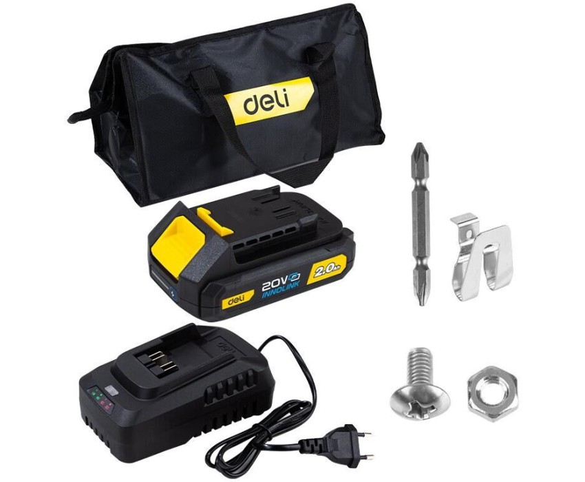Дрель-шуруповерт DELI Дрель-шуруповерт аккумуляторная DC120 (2 АКБ*2Ач+ЗУ, 20В, 45Нм, сумка)