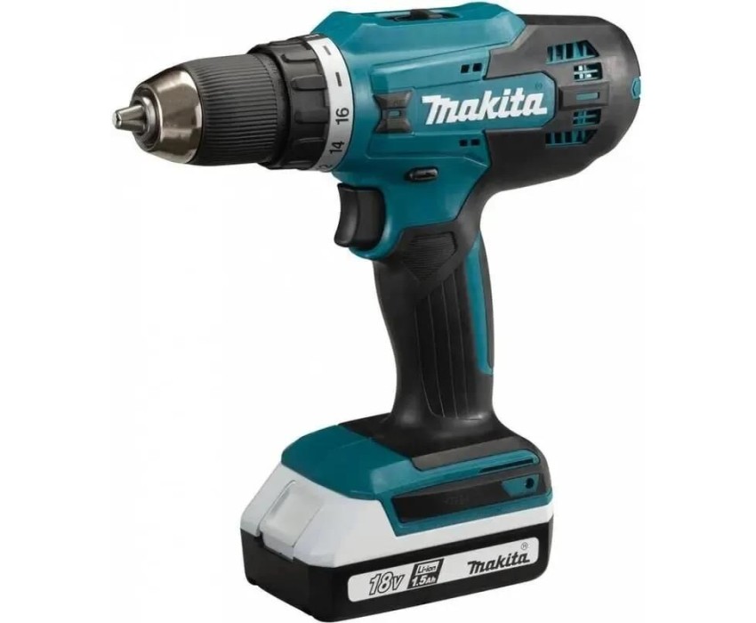 Тип инструмента: Дрель-шуруповерт. Крутящий момент: 42. Крутящий момент (мягкое заворачивание): 24. Количество скоростей: двухскоростной. Число ступеней крутящего момента: 16+D. Наличие функции "сверление": есть. Тип основного патрона: быстрозажимной. Максимальный диаметр сверления (сталь): 13. Максимальный диаметр сверления (дерево): 36. Максимальный диаметр шурупов: 6. Тип электропитания: от аккумулятора. Емкость аккумулятора: 1.5. Напряжение аккумулятора: 18. Тип аккумулятора: Li-Ion. Запасной аккумулятор: в комплекте. Жесткий кейс в комплекте: есть. Вес товара: 1.7. Длина инструмента: 221. Высота инструмента: 240. Комплект поставки: Дрель-шуруповерт, 2 аккумулятора емкостью 1.5А/ч, зарядное устройство серии G DC18WB, пластиковый кейс Makita 824981-2, бита.. Бесщеточный двигатель: нет. Аккумулятор: в комплекте. Зарядное устройство: в комплекте. Количество аккумуляторов в комплекте: 2 аккумулятора. Габариты упаковки (ед) ДхШхВ: 0.5x0.14x0.37. Вес упаковки (ед): 5.35. Страна производства: Китай. Гарантия: 12 мес.. Число оборотов (для 2 скорости): 1400 об/мин. Диаметр основного патрона: 1.5 - 13 мм. Число оборотов: 400 об/мин. Основной патрон: быстрозажимной, 1.5 - 13 мм. Батарея: Li-Ion, 18 В, 1.5 Ач; запасная батарея в комплекте. Вес: 1.7 кг. Функции: сверление. Обороты: 400 об/мин / 1400 об/мин , скоростей двухскоростной. Крутящий момент: 42 Н*м / 24 Н*м , ступеней 16+D