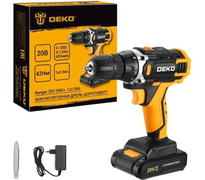 DEKO Аккумуляторная дрель-шуруповерт Banger 20V ONE+, 1x2.0Ач