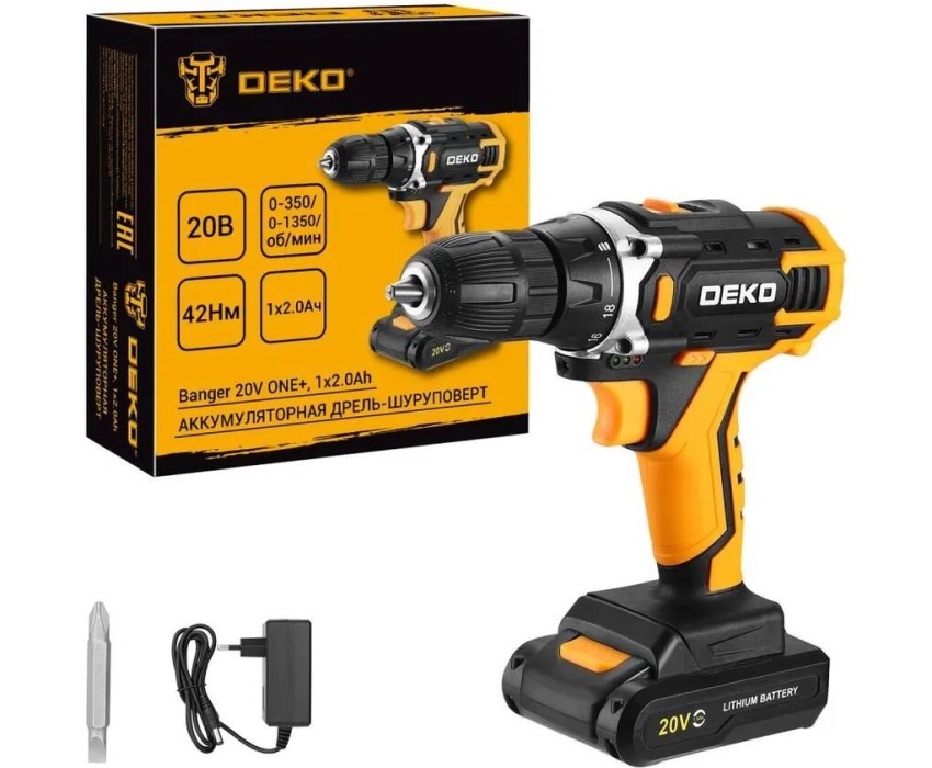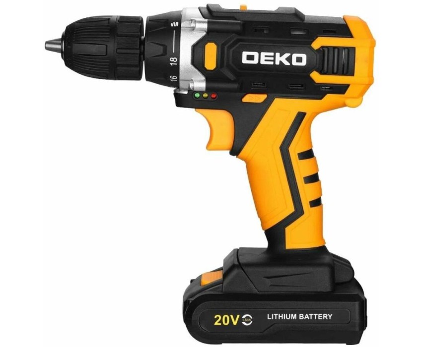 Аккумуляторная дрель-шуруповерт DEKO Banger 20V ONE+, 1x2. 0Ah предназначена для строительных, слесарно-монтажных работ. Инструмент помогает быстро высверливать отверстия нужного диаметра как на деревянной, так и металлической поверхности, быстро вкручивать или извлекать крепеж.