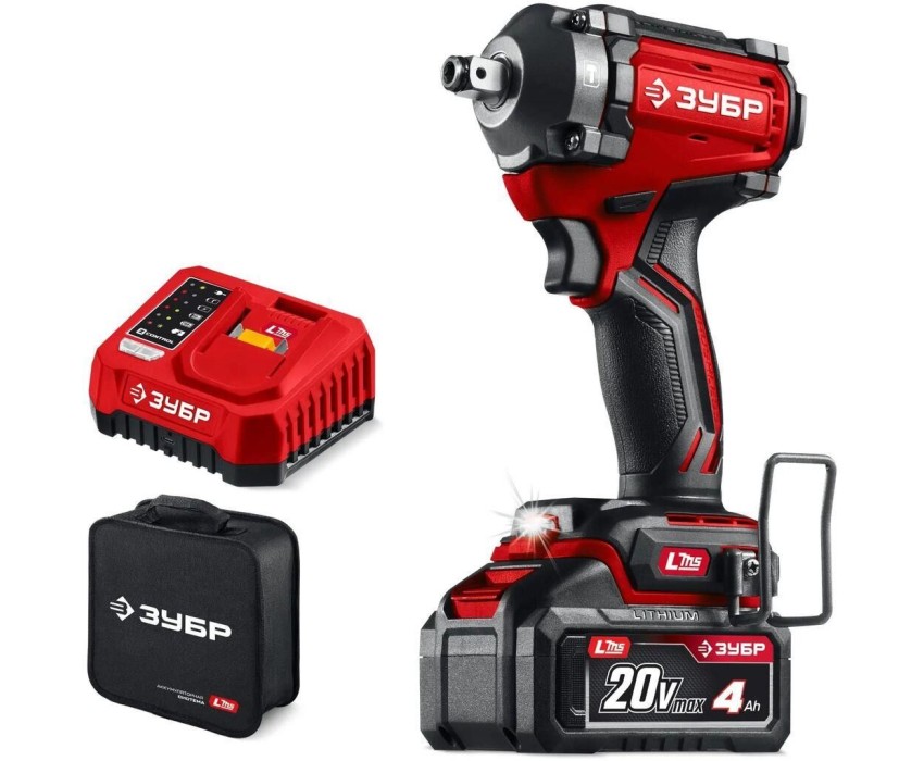 ЗУБР Ударный гайковерт ГБУ-350-41, LMS, 4Ач, с одним аккумулятором