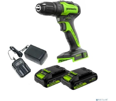 [Дрели, Шуруповерты, Гайковерты] Greenworks GD24DD35 Дрель-шуруповерт аккумуляторная, 24V, б/щет, 29/35Нм,2х2Ач,ЗУ,кор [3704007CUC]