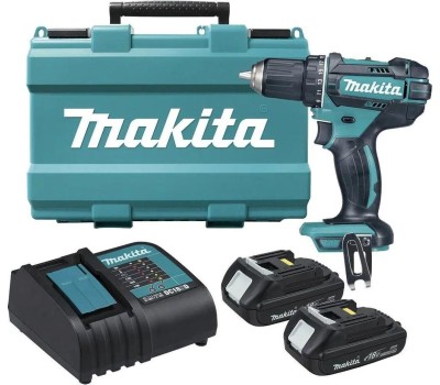 Тип инструмента: Ударная дрель-шуруповерт Бренд: MAKITA Модель: DHP482SYE PartNumber/Артикул Производителя: DHP482SYE Тип основного патрона: быстрозажимной Жесткий кейс в комплекте: ДА Тип электропитания: от аккумулятора Крутящий момент: 62 Н*м Крутящий момент (мягкое заворачивание): 36 Н*м Число оборотов: 600 об/мин Число оборотов (для второй скорости): 1900 об/мин Емкость аккумулятора: 1.5 Ач Тип аккумулятора: Li-Ion Вес товара: 1.8 кг Аккумулятор в комплекте: ДА Зарядное устройство в комплекте: ДА Количество аккумуляторов в комплекте: 2 Габариты упаковки (ед) ДхШхВ: 0.409x0.131x0.289 м Объем упаковки (ед): 0.015484331 м3 Вес упаковки (ед): 4.4 кг Количество скоростей: 2 Число ступеней крутящего момента: 21+2 Частота удара, макс (для первой скорости): 9000 уд/мин Частота удара, макс (для второй скорости): 28500 уд/мин Диаметр основного патрона: 1.5-13 мм Максимальный диаметр сверления (сталь): 13 мм Максимальный диаметр сверления (дерево): 38 мм Максимальный диаметр шурупов: 10 мм Тип электрического двигателя: щеточный Время зарядки, около: 30 мин Запасная АКБ в комплекте: ДА Комплект поставки: Аккумуляторная дрель-шуруповерт; 2 аккумулятора по 1.5 А*ч; зарядное устройство; крючок; бита; кейс. Длина инструмента: 198 мм Высота инструмента: 249 мм Устройство аккумулятора: Слайдер Функциональные особенности: блокировка шпинделя Напряжение аккумулятора: 18 В