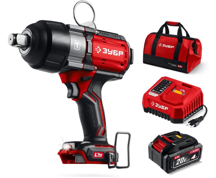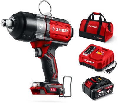 ЗУБР 20 В, 1000 Н·м, 1 АКБ LMS (4 А·ч), бесщеточный ударный гайковерт, сумка (ГБУ-1000-41)