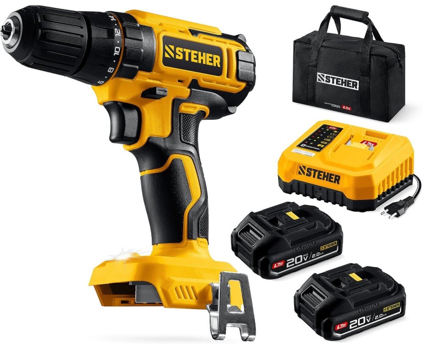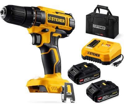 STEHER 20 В, 40 Н·м, 2 АКБ LMS (2 А·ч), дрель-шуруповерт, сумка (CD-40-22)