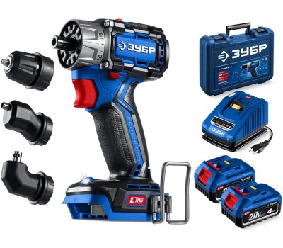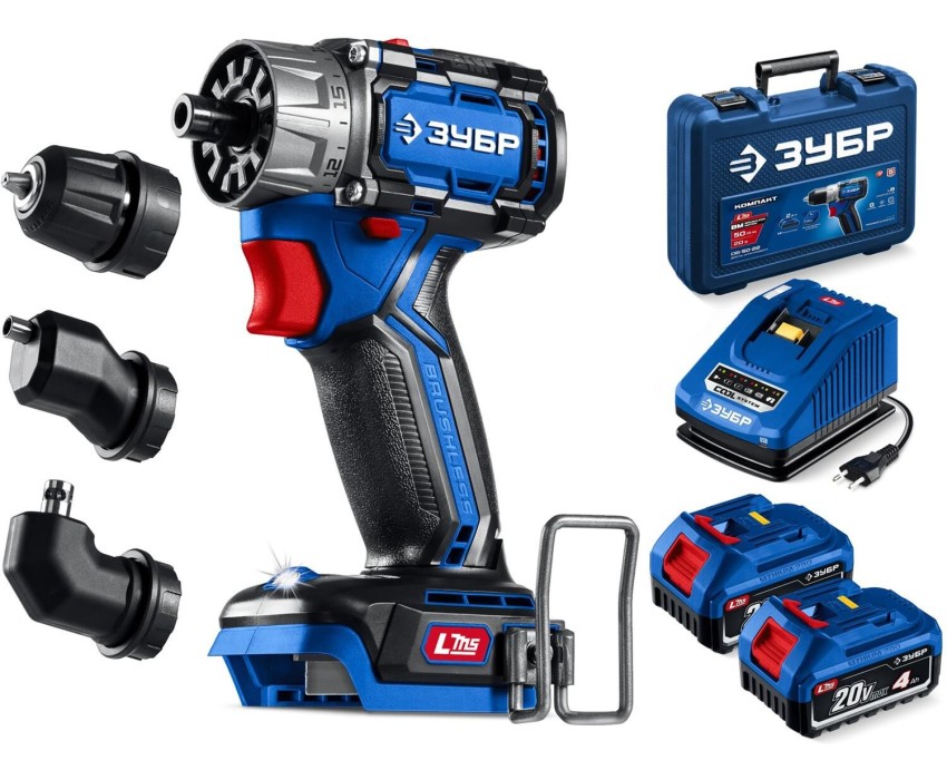 ЗУБР КОМПАКТ Комби #3, 20 В, 50 Н·м, 2 АКБ LMS (4 А·ч), бесщеточная модульная дрель-шуруповерт, кейс, ПРОФЕССИОНАЛ (DB-50-42-H3)