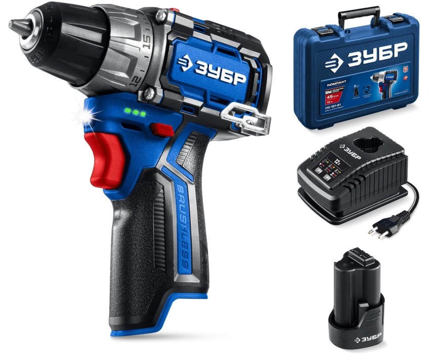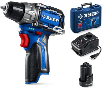 ЗУБР КОМПАКТ #2, 12 В, 45 Н·м, 1 АКБ тип Т7 (2 А·ч), дрель-шуруповерт, BRUSHLESS, кейс, Профессионал (DB-121-21)