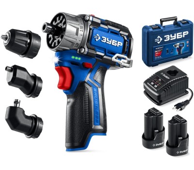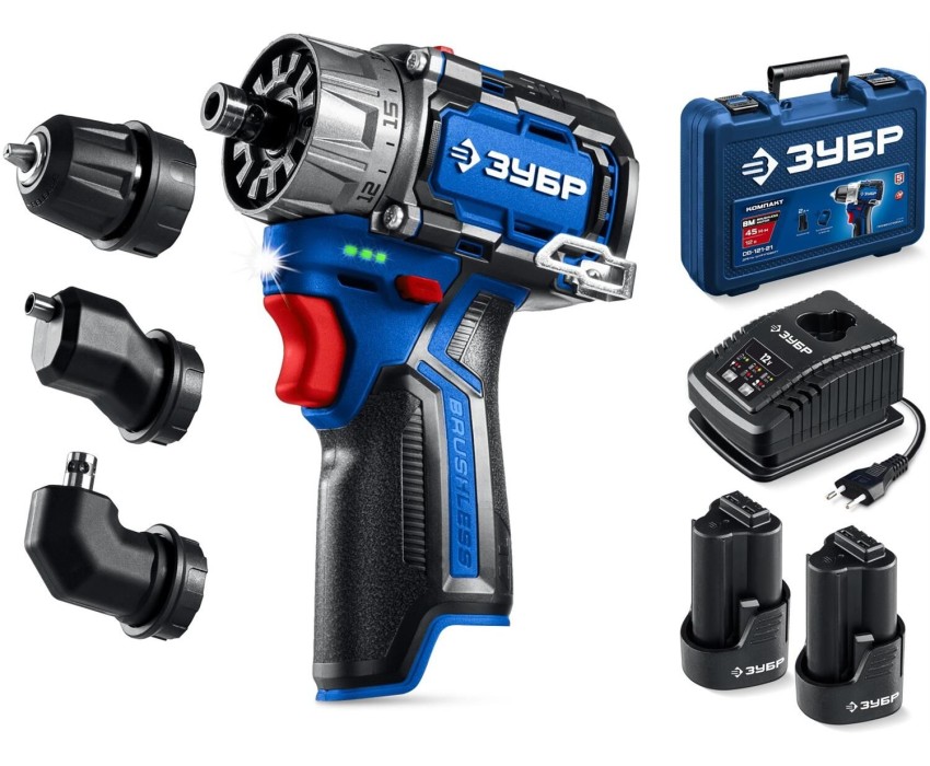ЗУБР КОМБИ #3, 12 В, 45 Н·м, 2 АКБ тип Т7 (2 А·ч), модульная дрель-шуруповерт, BRUSHLESS, кейс, Профессионал (DB-125-22)