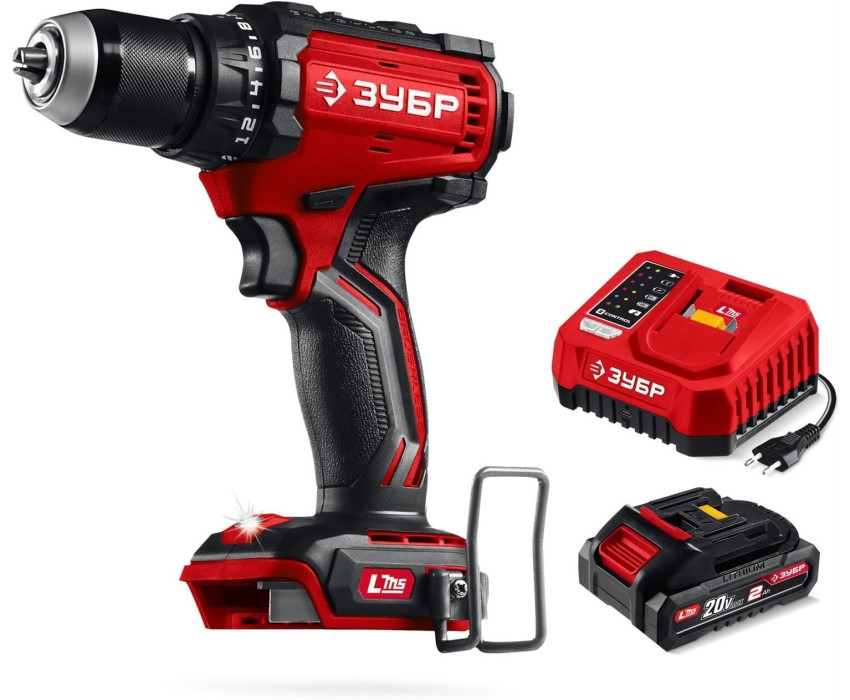 ЗУБР 20 В, 65 Н·м, 1 АКБ LMS (2 А·ч), бесщеточная дрель-шуруповерт (ДБ-65-21)
