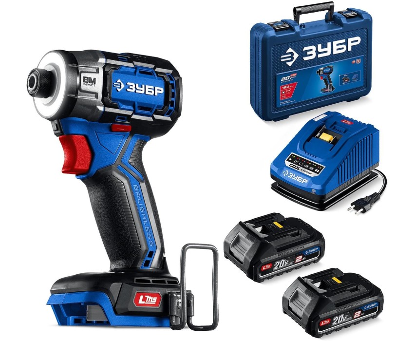 ЗУБР 20 В, 190 Н·м, 2 АКБ LMS (2 А·ч), бесщеточный ударный винтоверт, кейс, ПРОФЕССИОНАЛ (GVB-190-22)