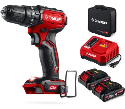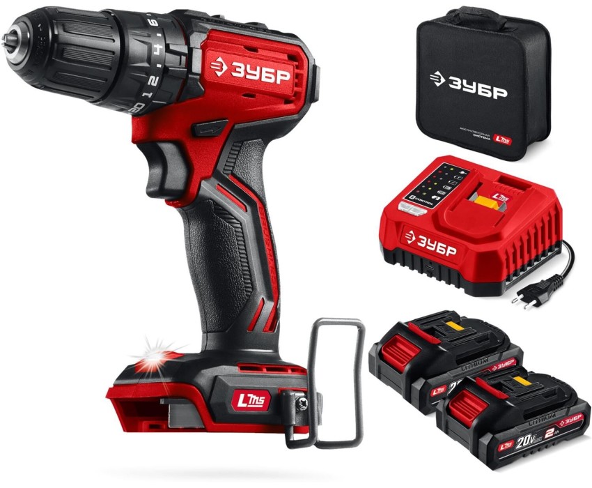 ЗУБР 20 В, 45 Н·м, 2 АКБ LMS (2 А·ч), бесщеточная ударная дрель-шуруповерт, сумка (ДБУ-45-22)