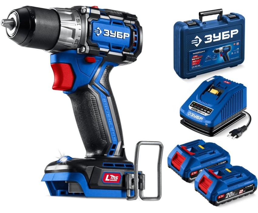 ЗУБР КОМПАКТ #2 20 В, 50 Н·м, 2 АКБ LMS (2 А·ч), бесщеточная дрель-шуруповерт, кейс, ПРОФЕССИОНАЛ (DB-50-22)