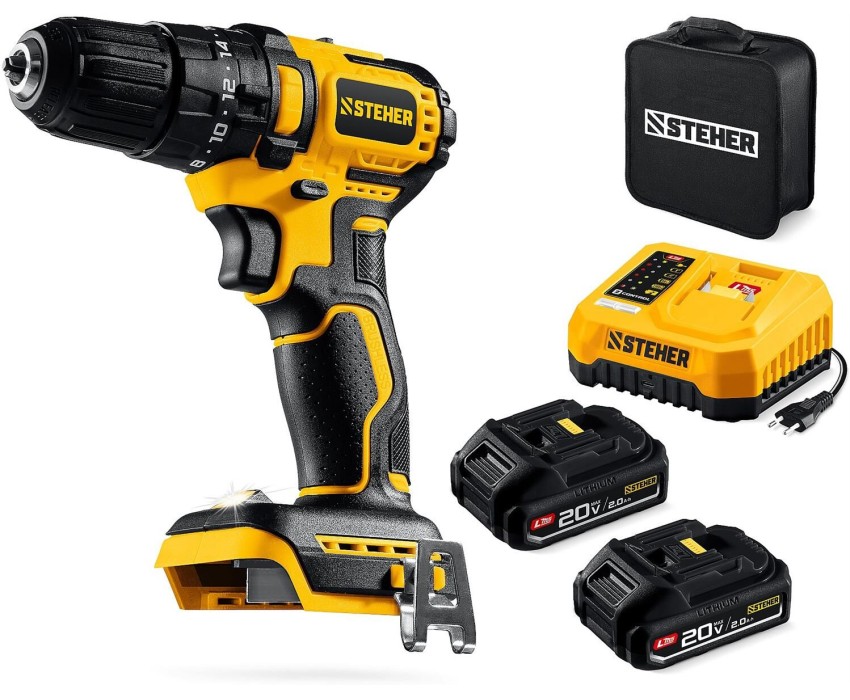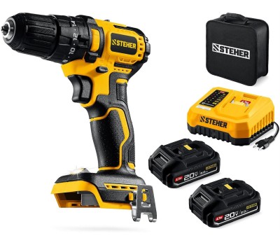 STEHER 20 В, 45 Н·м, 2 АКБ LMS (2 А·ч), бесщеточная ударная дрель-шуруповерт, сумка (CBS-45-22)