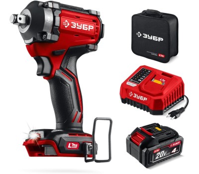 ЗУБР 20 В, 500 Н·м, 1 АКБ LMS (4 А·ч), бесщеточный ударный гайковерт, сумка (ГБУ-500-41)
