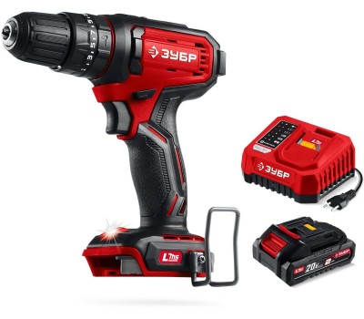 ЗУБР 20 В, 40 Н·м, 1 АКБ LMS (2 А·ч), ударная дрель-шуруповерт (ДШУ-40-21)