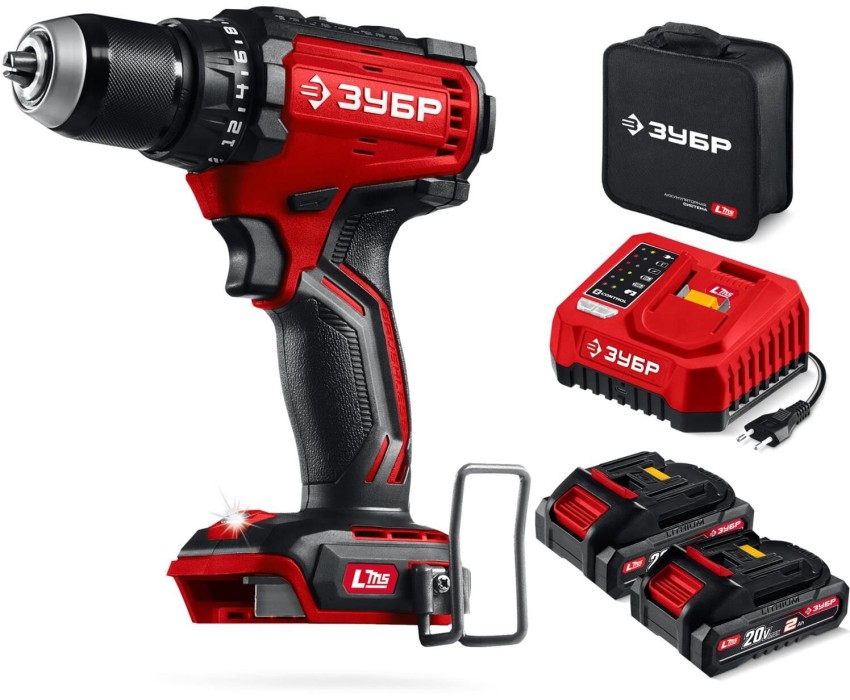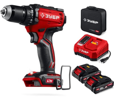 ЗУБР 20 В, 65 Н·м, 2 АКБ LMS (2 А·ч), бесщеточная дрель-шуруповерт, сумка (ДБ-65-22)