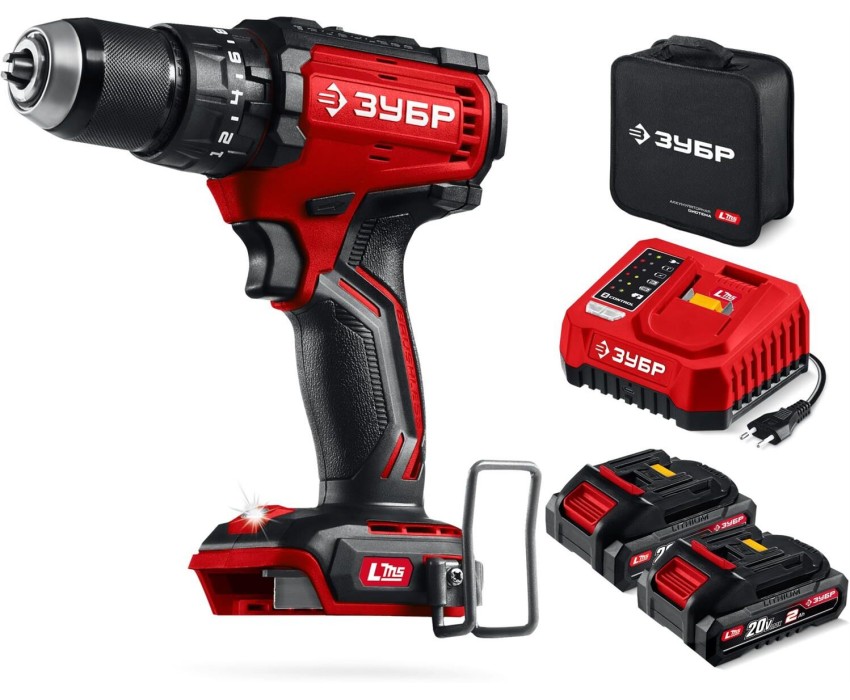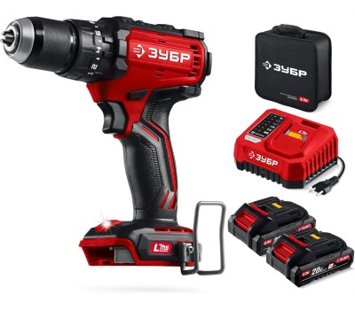 ЗУБР 20 В, 65 Н·м, 2 АКБ LMS (2 А·ч), бесщеточная ударная дрель-шуруповерт, сумка (ДБУ-65-22)