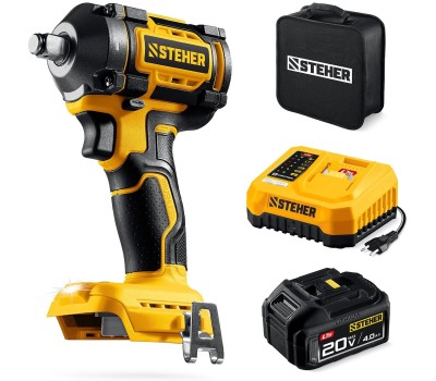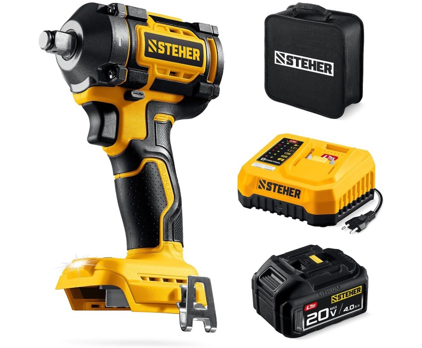 STEHER 20 В, 500 Н·м, 1 АКБ LMS (4 А·ч), бесщеточный ударный гайковерт, сумка (CWB-500-41)