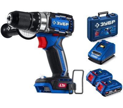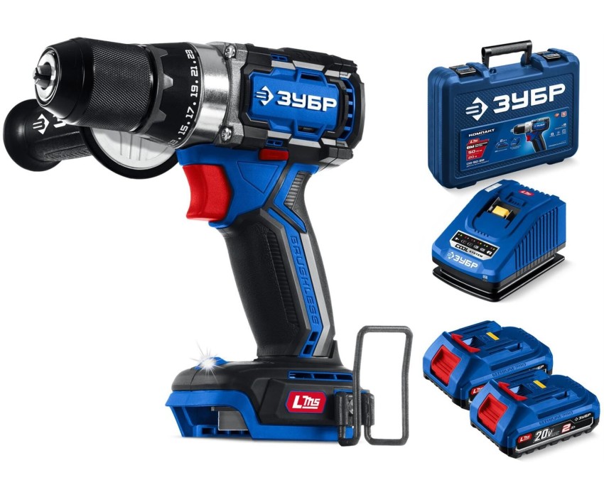 ЗУБР 20 В, 70 Н·м, 2 АКБ LMS (2 А·ч), бесщеточная дрель-шуруповерт, кейс, ПРОФЕССИОНАЛ (DB-70-22)