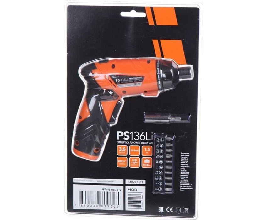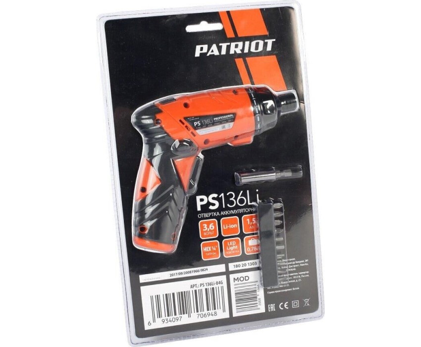 Отвертка PATRIOT 180201303 PS 136 3,6В, 1аккум