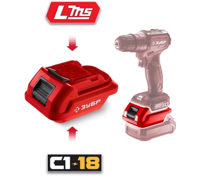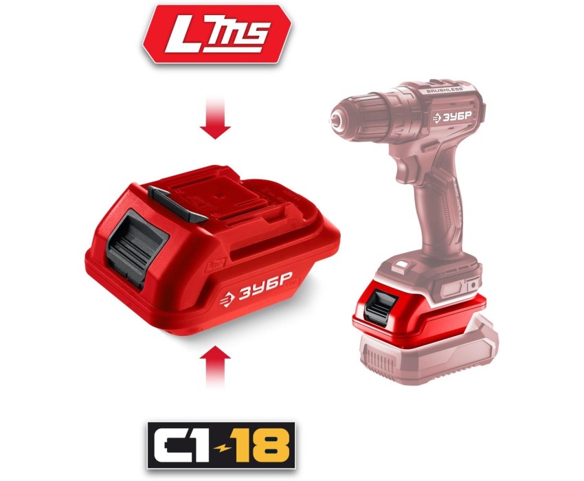 ЗУБР 18 В, адаптер для АКБ С1-18 под инструмент LMS, (С18-LMS)