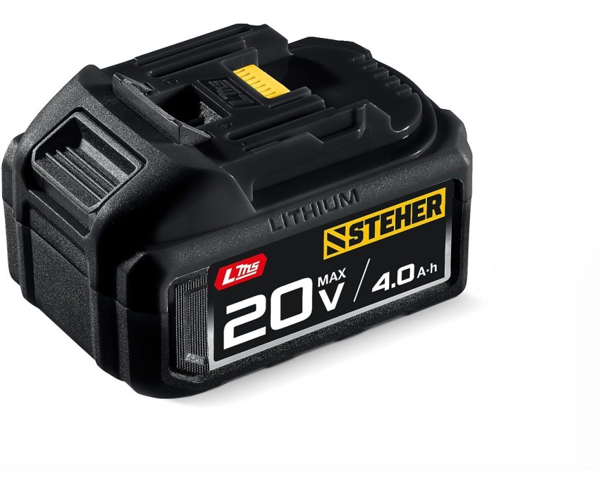 Аккумуляторная батарея для инструмента STEHER системы LMS позволит Вам работать еще дольше и производительнее. Усовершенствованная технология элементов обеспечивает повышенные удельные характеристики и длительный срок службы Преимущества Емкость 4.0 Ач подходит для длительных работ или работ с повышенными нагрузками Литий-ионная технология следующего поколения: - увеличение производительности на 30%, - электронная система защиты от перегрузки, перегрева и глубокой разрядки, - отсутствие эффекта памяти, - отсутствие потери мощности в процессе работы Защита от перегрева, глубокой разрядки и перегрузки Качественные элементы с более 500 циклами заряда / разряда Специально спроектированное туннельное охлаждение для возможности зарядки на БЗУ Индикация заряда для контроля состояния батареи, а также уведомление обо всех ошибках и неисправностях Ударопрочный корпус из ABS пластика Возможна зарядка в любое время Использование Для обеспечения питания аккумуляторного инструмента