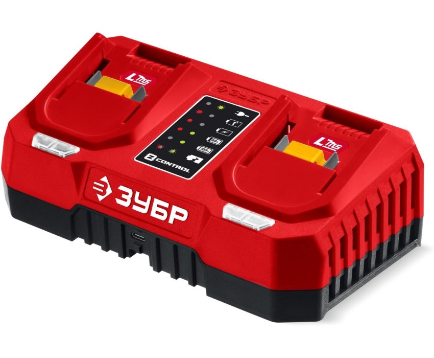 Полностью цифровое интеллектуальное устройство для бережной и максимальной (в отличие от устройств другого типа) зарядки батареи - для полной отдачи Вашего инструмента ЗУБР Преимущества Зарядное устройство нового поколения с высоким качеством заряда Наличие двух портов для одновременной зарядки батарей ускоряет процесс заряда Сверхбыстрая зарядка током 3 А на порт позволяет работать практически без перерывов Преимущества интеллектуальной зарядки: - более глубокий заряд позволяет использовать 100% емкости, - высокий КПД, - более щадящая зарядка аккумулятора, - меньше нагрев Управляется электроникой: - диагностика состояния АКБ, - контроль степени заряда и температуры, - автоматическое отключение по окончании зарядки или при неисправности АКБ Защита от повреждений зарядного устройства и аккумулятора: - защита от перепадов напряжения в сети, - защита от перегрева, - защита от короткого замыкания, - защита от переполюсовки контактов Порт USB-type C (3.1) для зарядки аккумуляторных устройств (телефон, ноутбук, внешний аккумулятор, часы, наушники) Светодиодная индикация процесса зарядки и неисправностей Возможность крепления на стену Использование Для зарядки батарей аккумуляторного инструмента