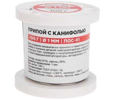 REXANT Припой с канифолью ПОС-61, 100г, Ø1мм, (олово 61%, свинец 39%), катушка