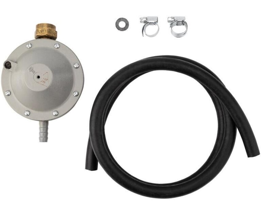 Комплект предназначен для подключения газовых грилей, газовых плит и туристических газовых плит и обогревателей (при наличии соответствующих коннекторов в конструкции) к пропановым баллонам. Набор состоит из регулятора давления РДСГ 1-1,2, газового шланга и 2 червячных хомутов. Регулятор используется для автоматического поддержания давления газа в заданных пределах. Шланг относится к 1 классу и имеет длину 1,5 метра. Внутренний диаметр составляет 9 мм. Хомуты, выполненные из качественных материалов, позволяют обеспечить надежную фиксацию и прочное соединение.