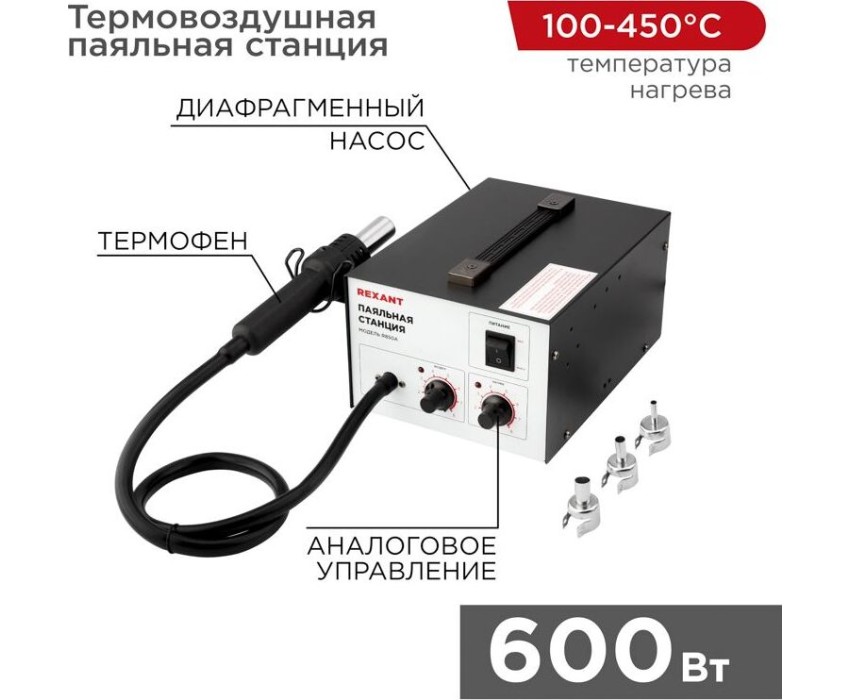 REXANT Паяльная станция (термофен), модель R850A, термовоздушная, компрессорная, 100-450°C